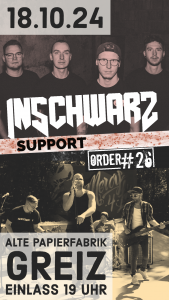 18.10.24 – Alte Papierfabrik Greiz Einlass: 19:00 Uhr InSchwarzSupport: Order#26 TicketsWeitere Infos ALBUM – UNLEASHED Jetzt Bestellen Weiter zur Homepage